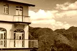 View of the hotel and Vinales valley, Pinar del Rio, Cuba. Close-up.