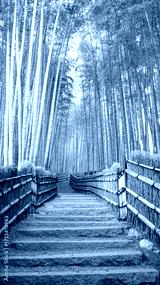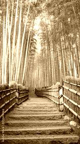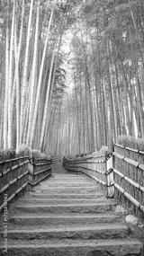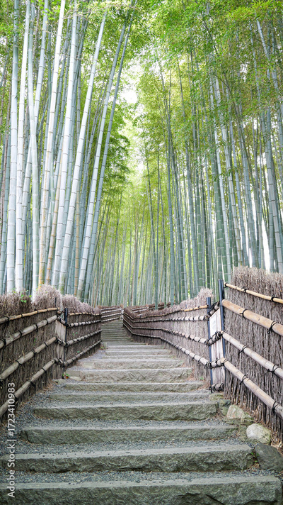 Vertical view of a empty road in the fabulous bamboo forest in Kyoto, Japan