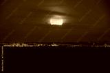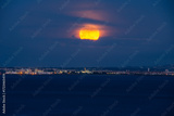 Full Moon, supermoon, blood moon Rising Above the Illuminated Night Skyline of Historic Lisbon, Portugal
