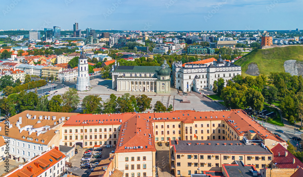 Aerial view of the Vilnius Cathedral in the capital city of Lithuania in the Baltic States