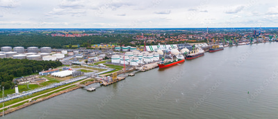 Aerial view of the freight port of Klaipeda on the coast of the Baltic Sea in Lithuania