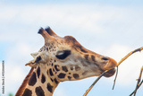 family of Giraffe Giraffa camelopardalis,with a baby. sticking out blue tongue