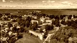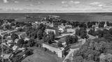 Aerial view of the Haapsalu Episcopal Castle on the west coast of Estonia along the Baltic Sea - Its fortifications include the town's cathedral