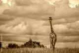 Wild Giraffe Standing Tall in African Savannah Under Dramatic Sky