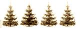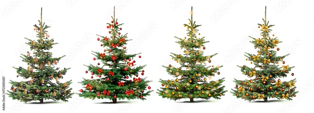 Verschieden Dekorierte Weihnachstsbäume vor weissem Hintergrund