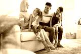 Happy family with children on sofa indoors