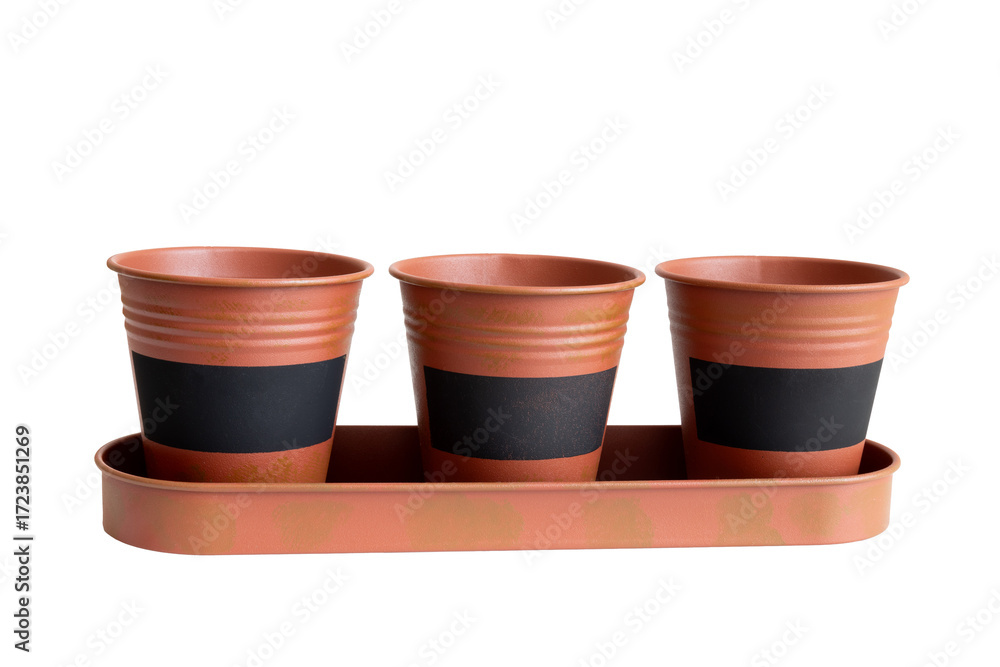 Three Terracotta Plant Pots With Black Chalkboard Labels On A Matching Tray For Display And Gift