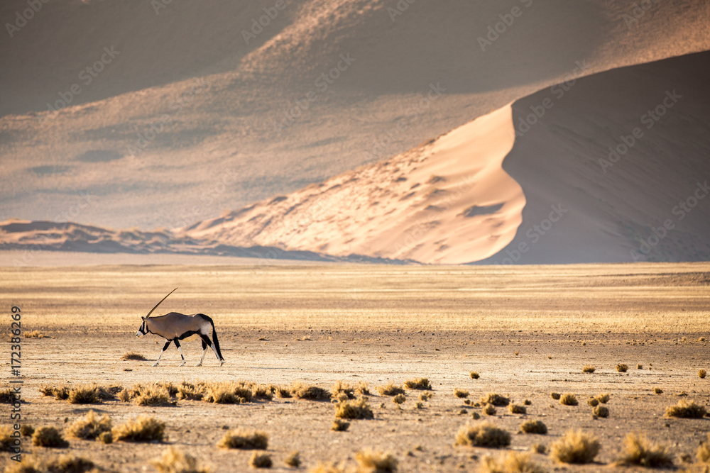 Oryx Gemsbok, desert sand dunes and landscape, Namib, Namibia, Africa
