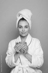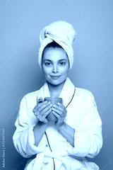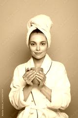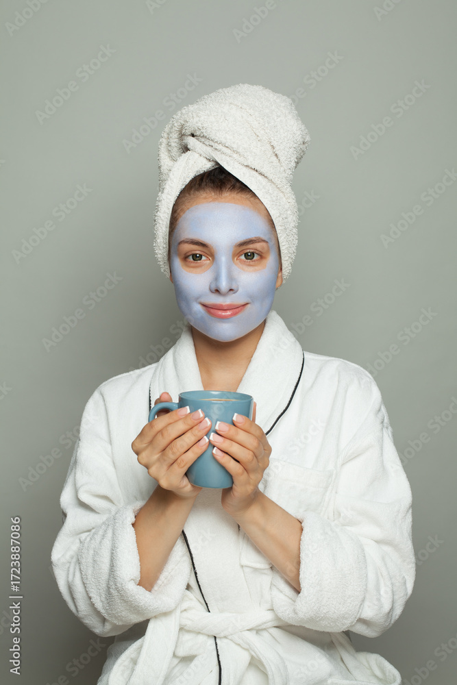 Morning routine with a facial mask and a warm cup of coffee for self-care