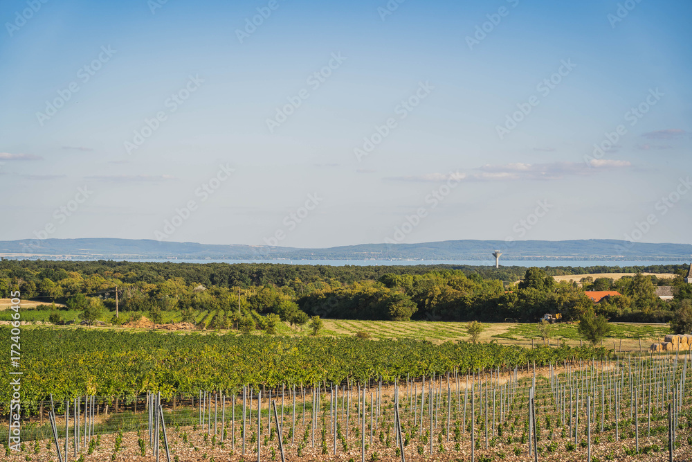 Amazing view of the grape fields on Lake Balaton in Hungary.