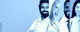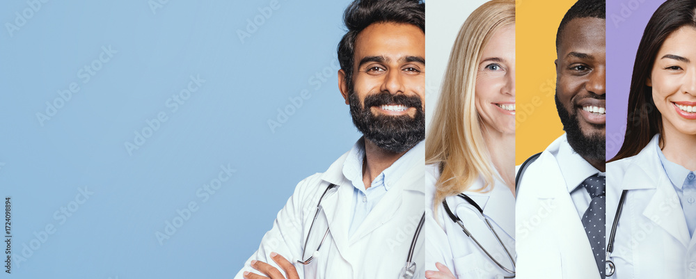 A collage featuring a man and a woman of diverse backgrounds dressed in medical attire. They represent collaboration in healthcare, emphasizing professionalism and inclusivity in medicine.
