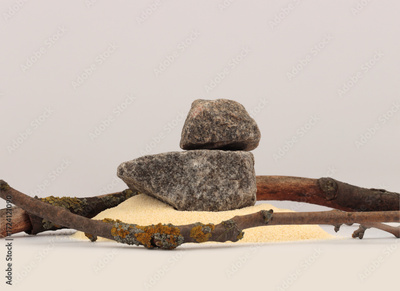 Sand and stones platform podium still life. Minimal empty display product presentation scene natural background.