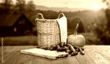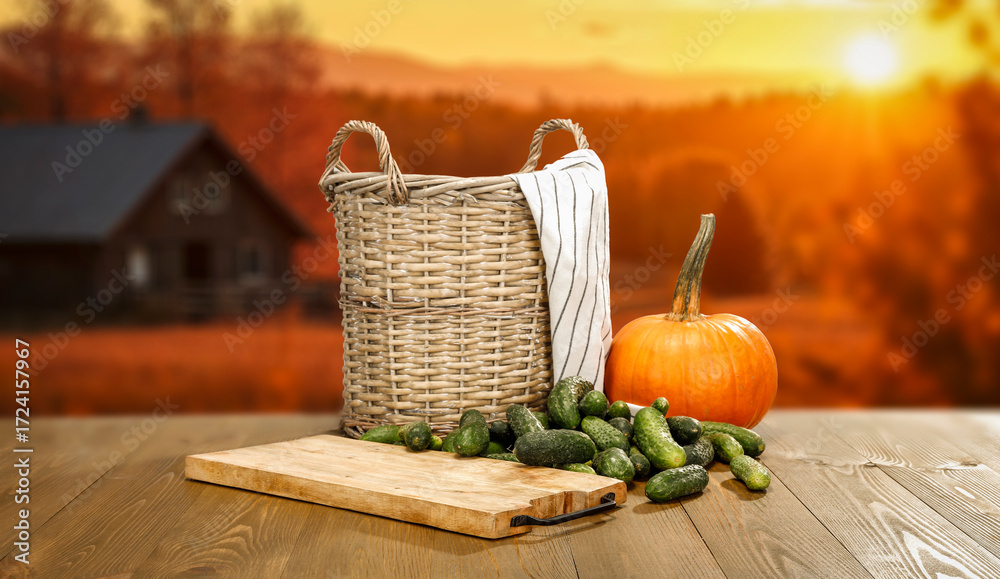 Autumn still life and blurred cozy seasonal mood background with copy space for product placement. Autumn-themed marketing, outdoor lifestyle concepts, seasonal advertising,nature-inspired mockups.