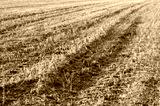 Field after soybean harvest in late autumn. Soybean cultivation.
