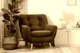 Comfortable blue armchair in living room. Interior design