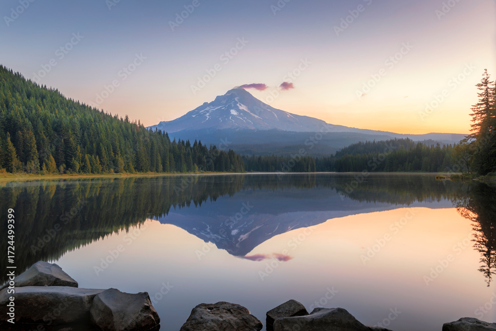 Sunrise over Mount Hood and Trillium Lake in Oregon