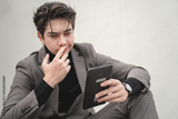 Thoughtful Young Man in Business Attire Engaged with Mobile Device