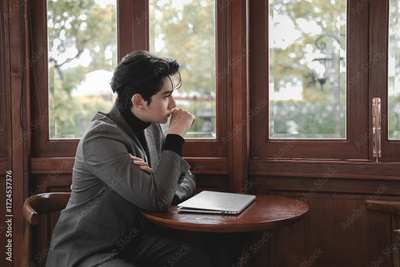 Thoughtful Young Professional in Modern Office Setting Near Window