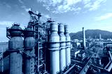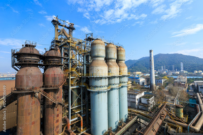 Old and rusty steel factory with blast furnaces and industrial equipment in a large industrial zone