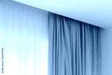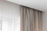 A window dressed with a two-tone curtain pair, featuring sheer white panels