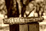 Piece of cork tree bark on foreground and blurred cork oak orchard in the background.