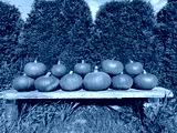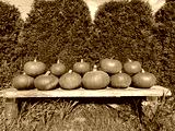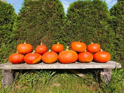 Pumpkins were harvested in the garden in the fall; the orange vegetables are sweet and healthy. Vitamin C in organic produce ensures a healthy diet.