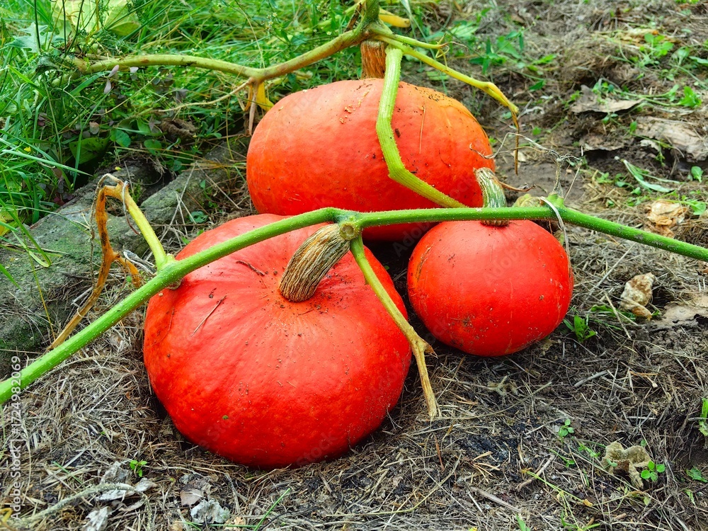 Pumpkins were harvested in the garden in the fall; the orange vegetables are sweet and healthy. Vitamin C in organic produce ensures a healthy diet.