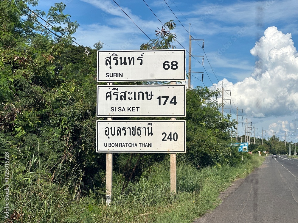 road sign in the countryside, Prakhon Chai, Buriram, Thailand travel.