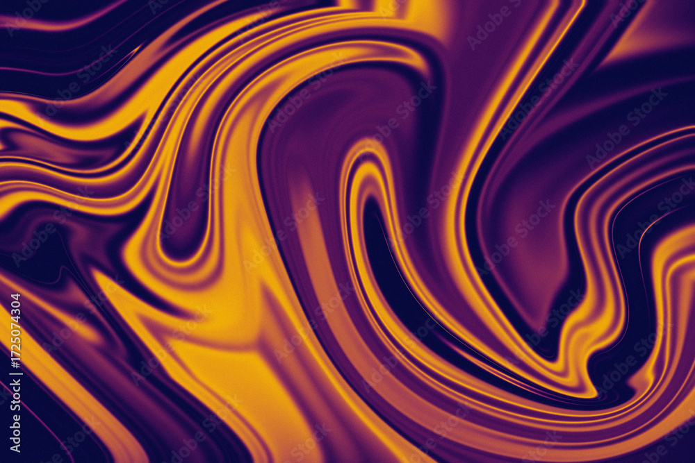 Closeup of marbled purple and gold liquid with flowing patterns