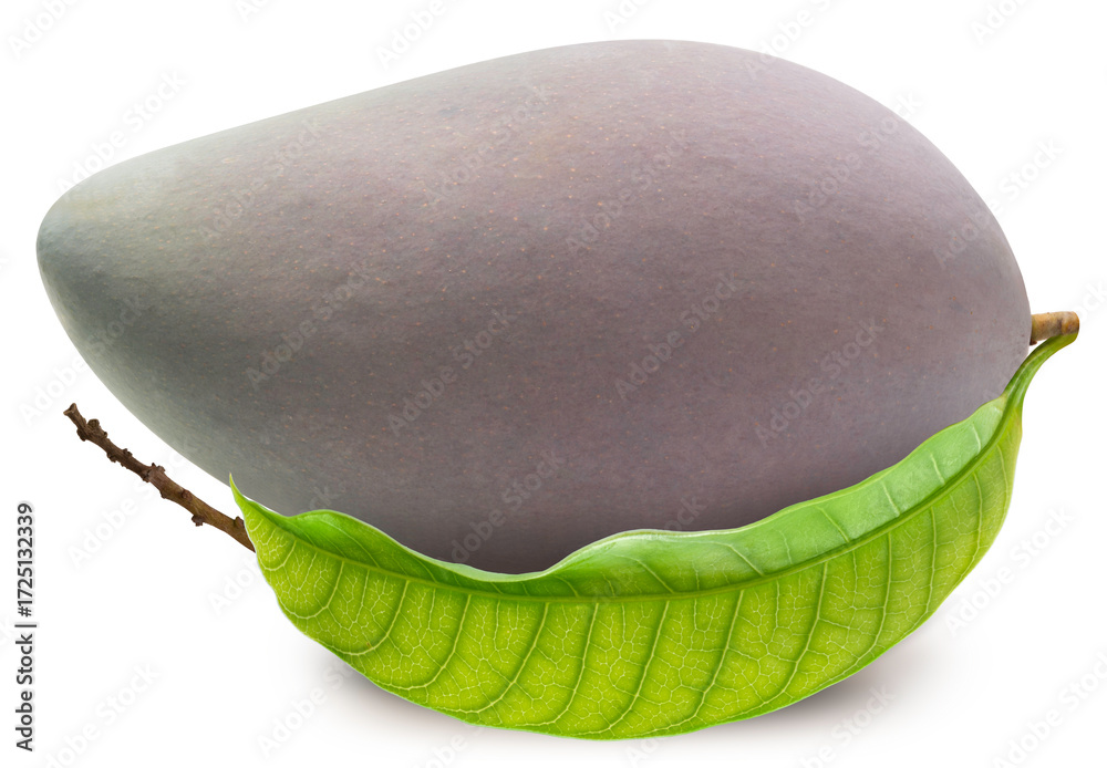 Fresh Mango fruit with fruit's natural wax isolated on white background, Red Mango natural with fruit bloom or fruit coating on white background, With clipping path.