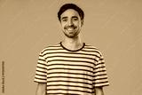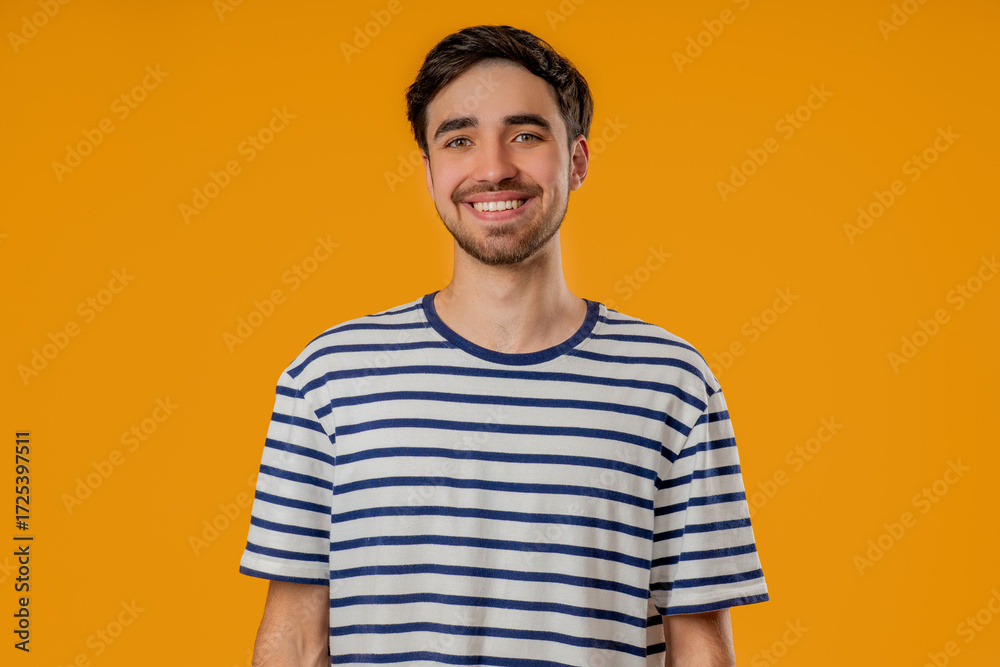 Young Friendly Man Smiling, Confident Happy Guy In Striped t-shirt On yellow