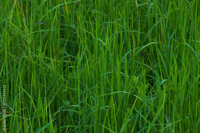 Rice landscape, green grass background. landscape from Thailand.