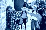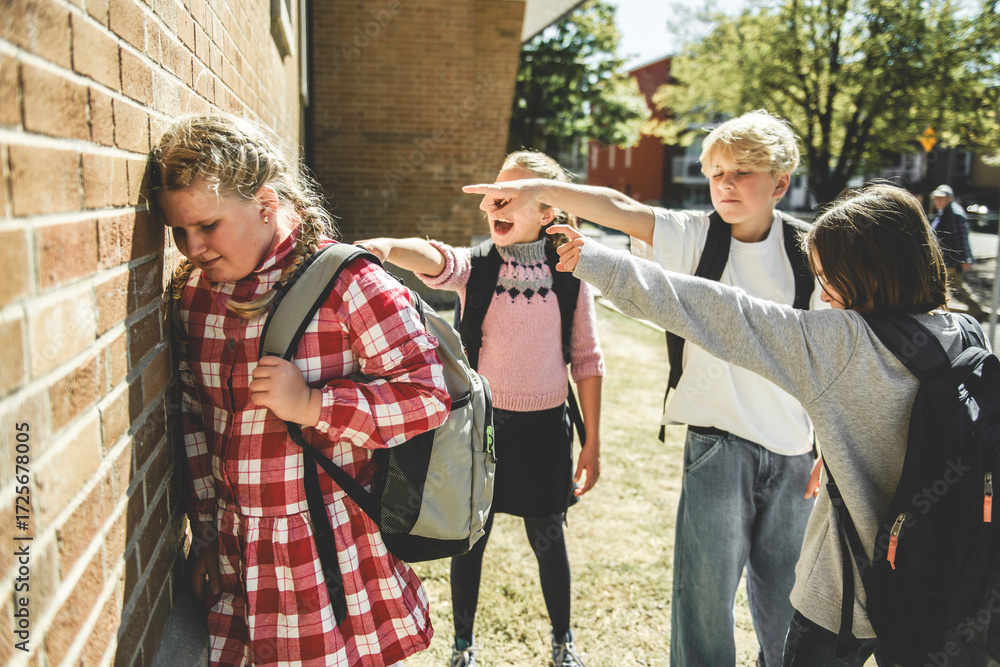 sad girl Bullying in Schoolyard with other student have some intimidation attitude