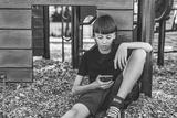 Portrait of teen using cellphone on school playground