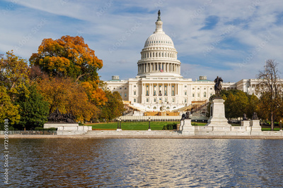 The U.S. Capitol in Washington, D.C., surrounded by vibrant autumn foliage