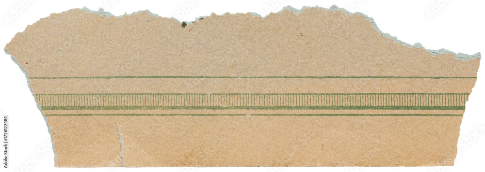 Piece from old faded vintage book page, torn scrap of paper with green pattern isolated for design