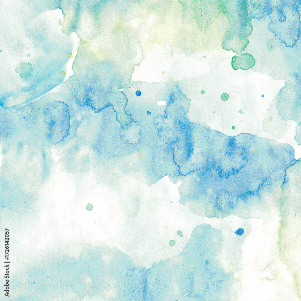Green blue yellow turquoise teal mint aqua beige white watercolor abstract background. Dusty pastel light pale soft dull shade. Drop blot splash splatter liquid. Multicolor.Design.