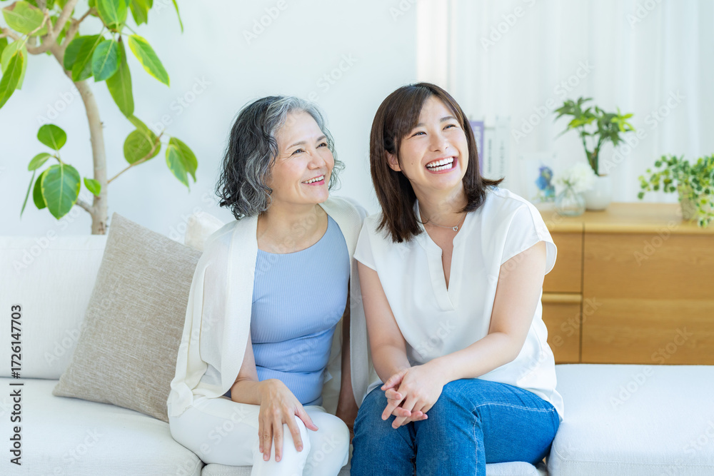 リビングでくつろぐ仲良し親子