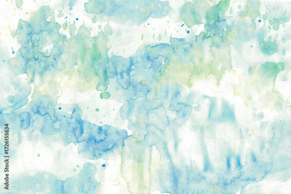 Green blue yellow turquoise teal mint aqua beige white watercolor abstract background. Dusty pastel light pale soft dull shade. Drop blot splash splatter liquid. Multicolor.Design.
