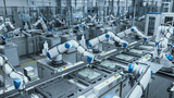 Automated Robotic Arms Assembling Circuit Boards on a Conveyor. Electronics Manufacturing with Precision and Efficiency. High-Tech Technology Production in a Futuristic Industrial Environment