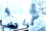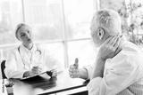 Patient Discussing Neck Pain With Doctor During Consultation in a Bright Medical Office