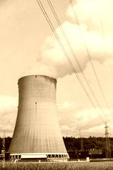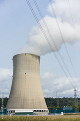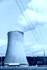 Cooling tower of nuclear power plant against the blue sky chimney landscape
