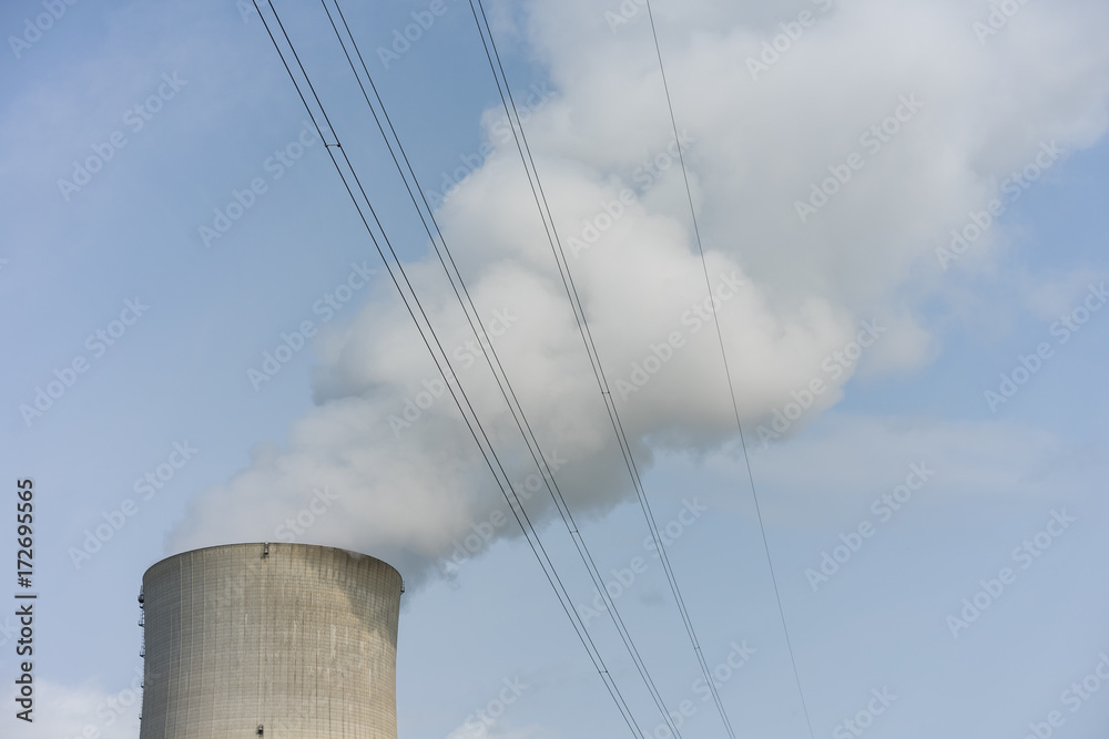 Cooling tower of nuclear power plant against the blue sky chimney landscape
