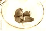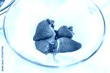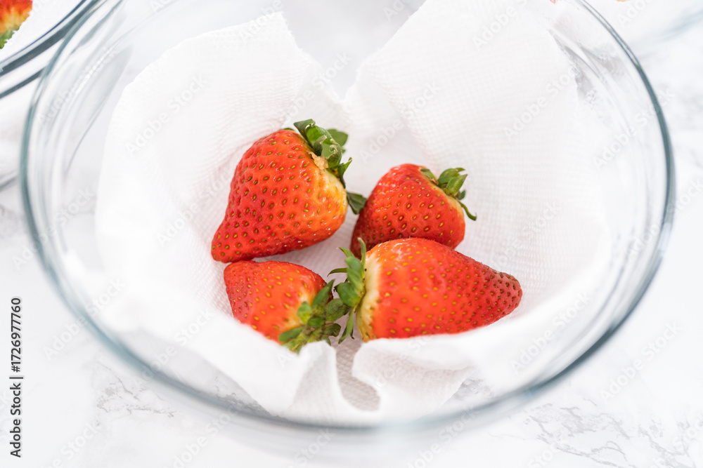 Fresh and Moldy Strawberries in a Glass Bowl on a White Napkin