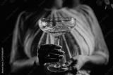 Woman Holding Champagne In Retro Styled Glass Goblet. New Year Party Celebration
