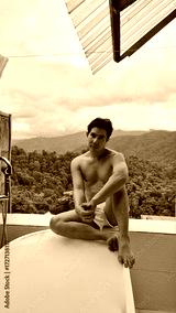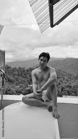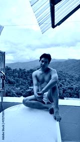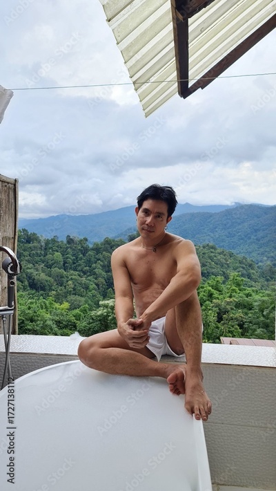 Handsome Man Unwinding in a Soapy Bathtub with a Stunning Mountain Vista
