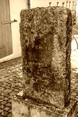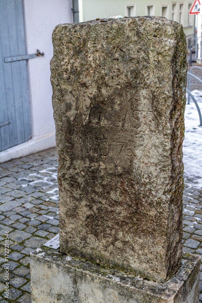 wolgast, deutschland - uralter stein am marktplatz