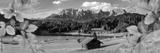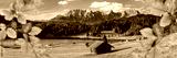 Eine farbige Herbstlandschaft an einem See in Bayern vor dem Karwendelgebirge - FOTOMONTAGE - digital bearbeitet
