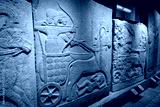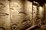 Ancient stone relief depicting Hittite warriors at the Museum of Anatolian Civilizations in Ankara, Turkey