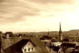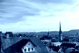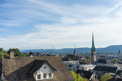 Scenery of old town of Zurich, Switzerland from University hill in summer